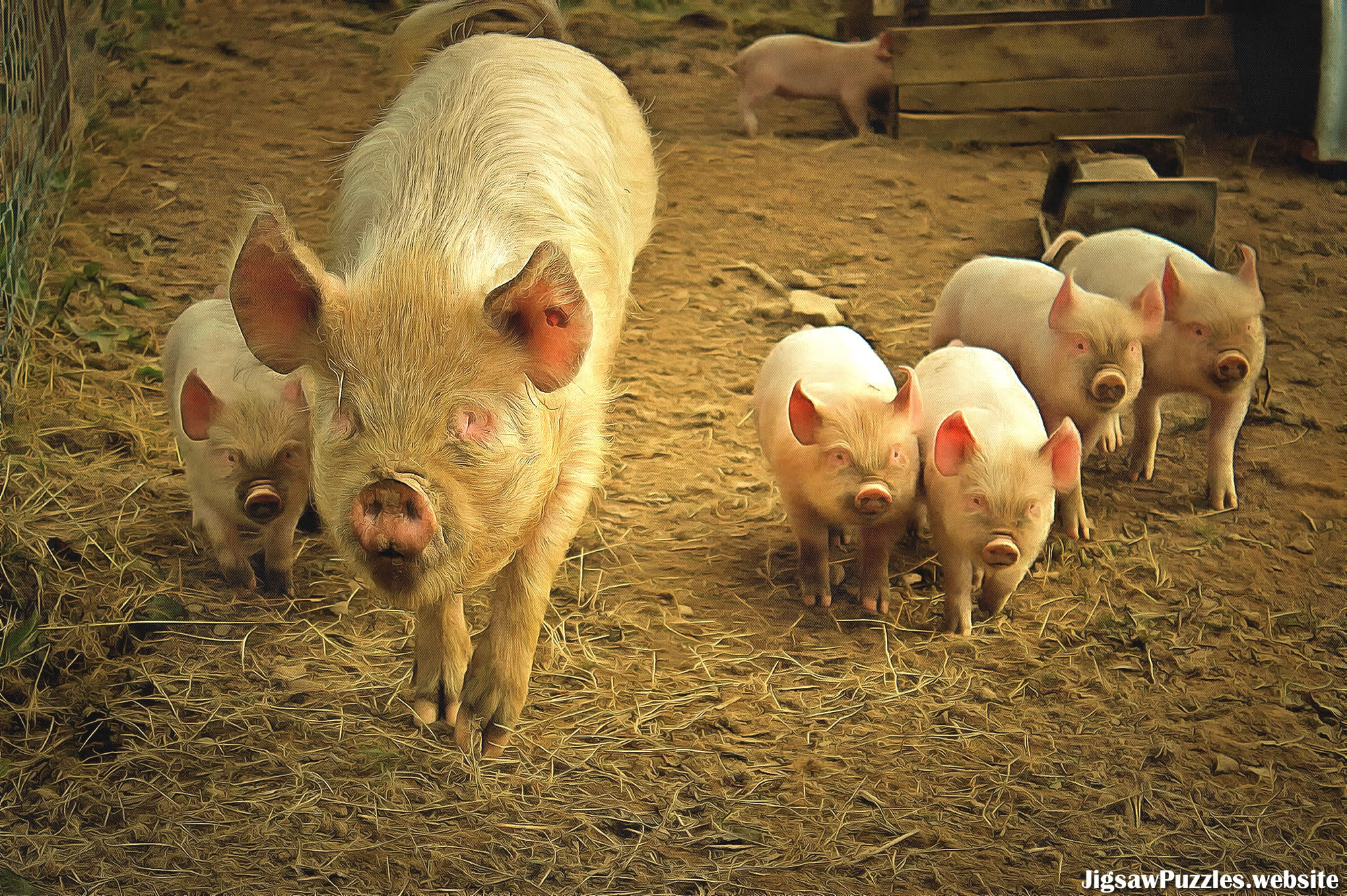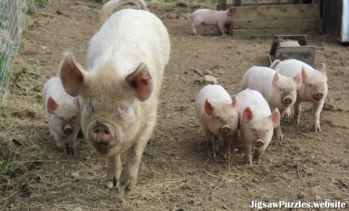 Farm pig with piglets picture used in the jigsaw created / photographed by the webmaster. Free to use with attribution - Creative Commons 2.0 General